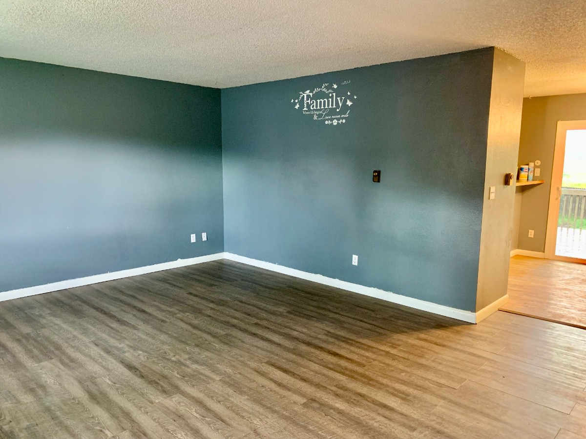 It has new flooring, new interior paint, new carpet, new roof. The living room is open and has a lovely large bay window for lots of natural light. The kitchen has stainless steel appliances, a breakfast bar, and is open to the dining room. The dining room walks out to a large fenced backyard and a large updated stained deck perfect to entertain and grill. The master bedroom on top level has ceiling fan and connects to a full bathroom with two sinks. There are two additional bedrooms on this level. The lower level has a fourth bedroom, a full bathroom, the laundry room with washer and dryer, and a family/rec room with an electrical heater.