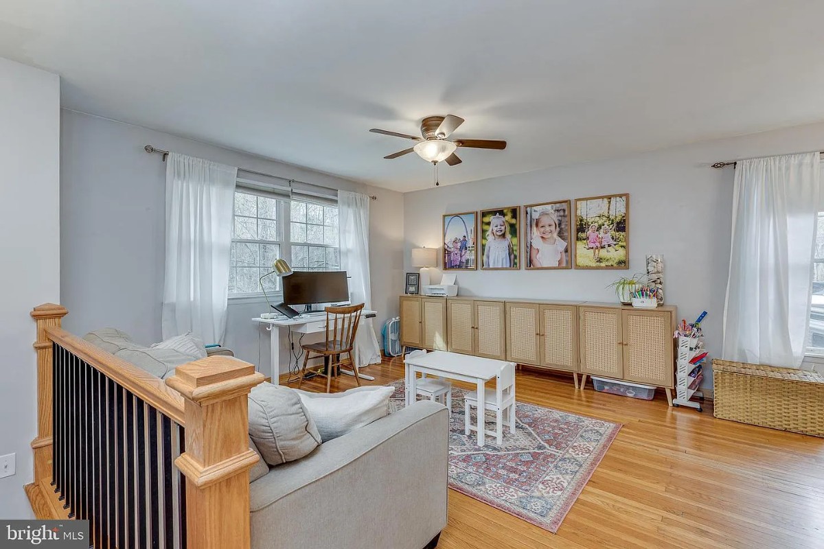For rent: owned by military family; showings available through our realtor Jody M Pagliuso, BHHS Fox & Roach, Realtors, (609) 410-9573. Spacious and updated 4-bedroom, 2-bath bi-level located on a wooded lot in a quiet neighborhood with highly rated schools. The home features an open floor plan with a gourmet kitchen offering oak cabinetry, granite countertops, a breakfast bar, tile flooring, and hardwood flooring throughout the main living areas. The kitchen flows seamlessly into the impressive great room with vaulted ceilings and abundant natural light. Formal dining room and formal living room provide the perfect setting for entertaining. The main level includes three generously sized bedrooms, a full bath, and a pull-down attic for additional storage. Step outside to a multi-level deck overlooking the expansive backyard. The lower level offers a spacious family room, a large master bedroom with master bath and jetted tub, with room enough for an office. The laundry room has interior access to the partially finished garage, which also provides additional storage, and an oversized 4 5-car-wide driveway.