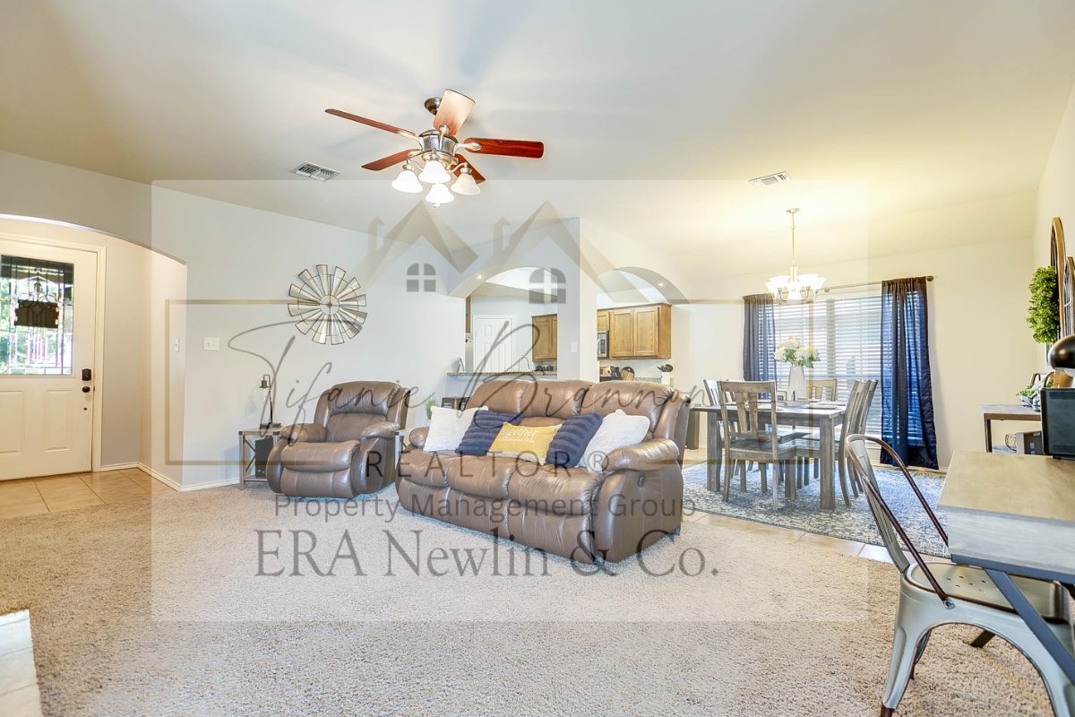 For Lease only. This home offers modern style and everyday comfort. The split bedroom layout features high ceilings, and a bright living area that flows into a well-equipped kitchen with granite countertops, stainless steel appliances and a walk-in pantry. The split-bedroom floor plan includes 4 bedrooms - each with generous closet space, ceiling fans, easy care windows and blinds, 2 full bathrooms, and a spacious primary ensuite with his and hers closets, a walk-in shower and tub. Enjoy the privacy fenced backyard sized, a covered patio. Walking distance to the prestigious Glenmore Elementary school, Glenmore Park, and to Goodfellow AFB. Pets may be considered with Property Manager approval (fees apply). This property may be leased unfurnished for $2,300/ month or fully furnished for $2,700/month. 12 month lease required, tenant pays all utilities.