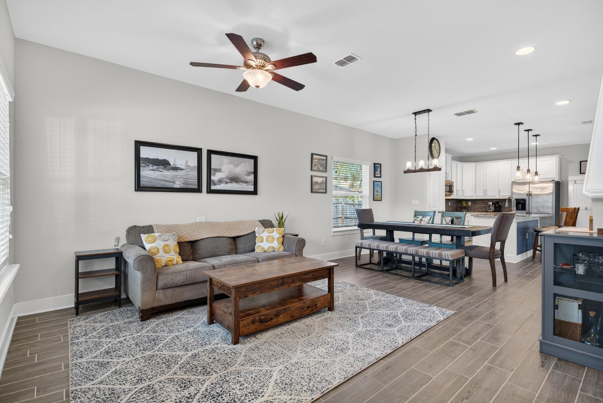 Located just minutes from of Avondale, Ortega, Murray Hill and NAS Jax this newer construction home offers the rare opportunity to enjoy several of Jacksonville's historic and walkable neighborhoods without the maintenance concerns that often come with older homes in the area. You'll love the ability to walk or bike to local coffee shops, restaurants, parks, and neighborhood favorites while still enjoying the comfort of a newer home. The kitchen features granite countertops, stainless steel appliances, and a center island that connects seamlessly to the living and dining areas. A custom gas fireplace anchors the main living space, adding warmth and character that perfectly complements the modern design.