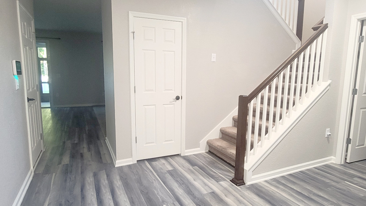 Welcome home to this beautiful and spacious four-bedroom, two-and-a-half-bath residence featuring a dedicated office. Constructed just five years ago, this property combines modern design with functionality. The expansive kitchen is perfect for culinary enthusiasts and seamlessly connects to a generous living area, ideal for entertaining. The main floor also offers a convenient half bath and a versatile office space to accommodate work-from-home needs. Enjoy the outdoors from the screened-in lanai, which overlooks a well-sized fenced backyard bordering serene woods—providing both privacy and natural views. Upstairs, three spacious bedrooms complement a luxurious master suite that includes a sizable bathroom and a walk-in closet with built-in organizers designed for optimal efficiency. Additional features include lawn care and solar panels, which keep average monthly electric bills under $200, making this large home both comfortable and energy-efficient. No pets.