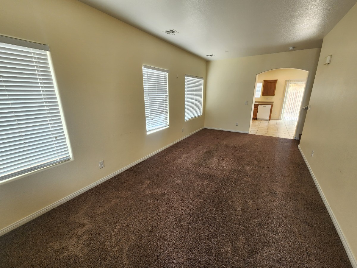 Move in ready CORNER lot house in Mountain's Edge! 4 beds, 2.5 baths, and spacious laundry room upstairs. Primary bedroom w/ 3 closets! All 4 beds upstairs, all appliances, full size 2-car garage. Downstairs, separate formal living and dining room combo, separate family room, and open layout kitchen with dining space for comfort. RENT INCLUDES trash, sewer, and yard maintenance - don't miss this great deal!