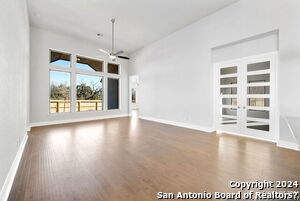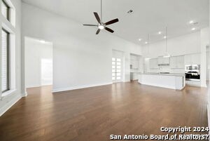 Gorgeous 4 bedroom/4 bath home located in the Stillwater Ranch Subdivision. This home features an open floor plan with high ceilings, wood flooring in the kitchen, living room and dining room. The kitchen offers an oversized island with built in shelving, gas cook top, built in oven and microwave, custom cabinets, tiled backsplash with plenty of lighting and opens up to the living room, great for family gatherings. The oversized master bedroom features plenty of windows for natural lighting, the master bath offers a free standing tub, separate standup shower, his and hers sinks, a vanity, with two large walk in closets. All secondary bedrooms come with their own bathrooms. Office/study located off of the living area, perfect for an at home office. The backyard boasts an oversized covered patio with a gas connection for those BBQ enthusiasts, privacy fence, great for entertaining. Close to major highways, Northwest Vista, UTSA, Fiesta Texas, Sea World, shopping and eateries.