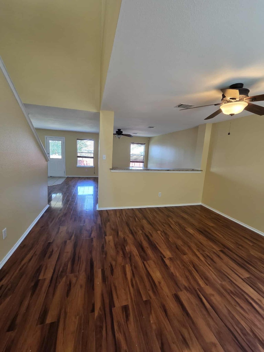 We have a large 2 story home with 4 bedrooms an 3 FULL bathrooms. One bedroom and bathroom is downstairs. There are 3 living areas as well and the laundry room is upstairs. The whole house recently had a makeover, with new tile in the bathrooms, new laminate flooring upstairs new granite countertops and a complete paintjob throughout. Either a family OR possibly 3 adults could co-habitate with each having their own room and their own bathroom as well as their own living room. There is a nice backyard and a covered patio. It's very close to Randolph Air Force Base. Well behaved dogs are welcome.