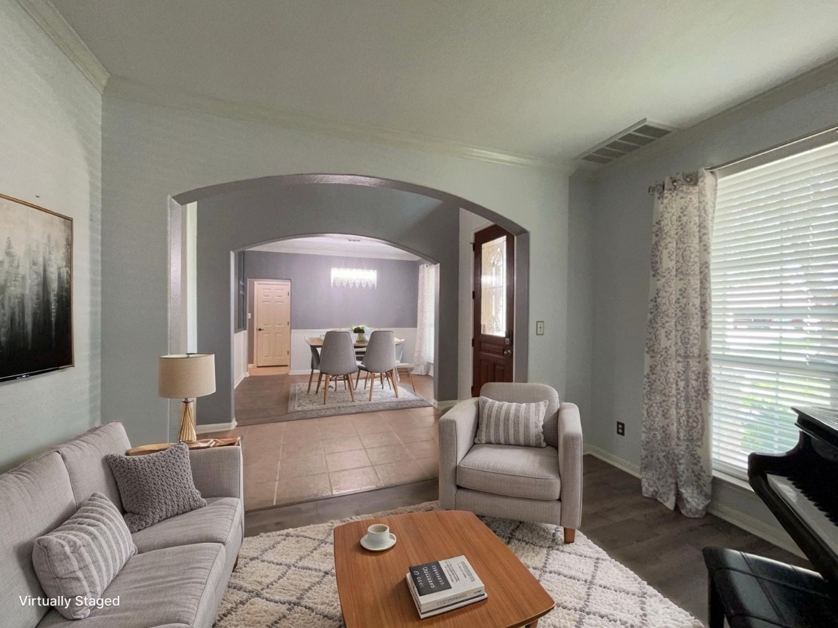 Welcome to this beautifully designed 4-bedroom, 3.5-bath home that offers an ideal blend of space, comfort and style. With three separate living areas, a dedicated dining room and soaring high ceilings, this home provides a flexible layout perfect for both relaxing and entertaining. Floor-to-ceiling windows fill the space with natural light, while ceramic tile and vinyl flooring throughout the main areas add durability and modern appeal. A cozy fireplace creates the perfect focal point for gathering or unwinding.