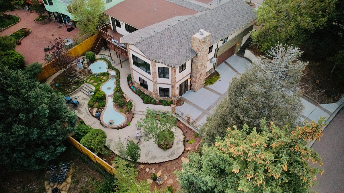 Looking for main level living in a foothills retreat with easy access to parks & trails? Welcome to a meticulously cared for home on a corner lot in Skyway Park Estates. Directly across from Bear Creek Park, you’ll enjoy trails, the Nature Center, dog park, Section 16, Captain Jack’s, Stratton Open Space, Cheyenne Cañon, & more. This home has been lovingly maintained & updated since it had a major renovation & expansion in 1989 - with continued improvement since. In the past year, the roof, HVAC, carpet, back decking, and whole house water filter were replaced or upgraded. The Class 4 roof adds durability, while custom concrete work and a circular drive enhance curb appeal. The oversized 2 car garage (753 SF) includes an epoxy floor finish, large work sink, built-in storage, & workshop area. The main level features a spacious living room with wet bar and walkout to the raised deck, a bright kitchen open to the dining area, and a formal office with built-in bookshelves. The kitchen also has a reverse osmosis faucet. A smaller office sits off the laundry and pantry. The primary suite includes a WIC, sitting area, and updated three-quarter bath. Another bedroom and full bath complete this level. The basement offers 2 bedrooms, full bath, large family room, and kitchenette. One bedroom can serve as a second primary suite with fireplace, WIC, and custom built-ins. Two walkouts lead to the backyard with multiple sitting areas, covered patio, and pools with a water feature that create a relaxing ambiance. Climate control includes central air, whole house fan, 2 furnaces, ceiling fans throughout, and a mini split in the primary bedroom. From casual evenings on the deck to shaded afternoons on the patio or mornings by the water feature, this home offers spaces that fit the moment, whether entertaining or relaxing. If you want a spacious, versatile home in a prime location near parks, trails, & a top school district, schedule your private tour today!
