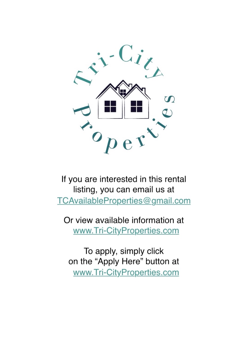 Posting for Tri-City Properties. All inquiries can be emailed to TCAvailableProperties@gmail.com. Check out more information and photos at www.tri-cityproperties.com. Do not disturb current occupants.