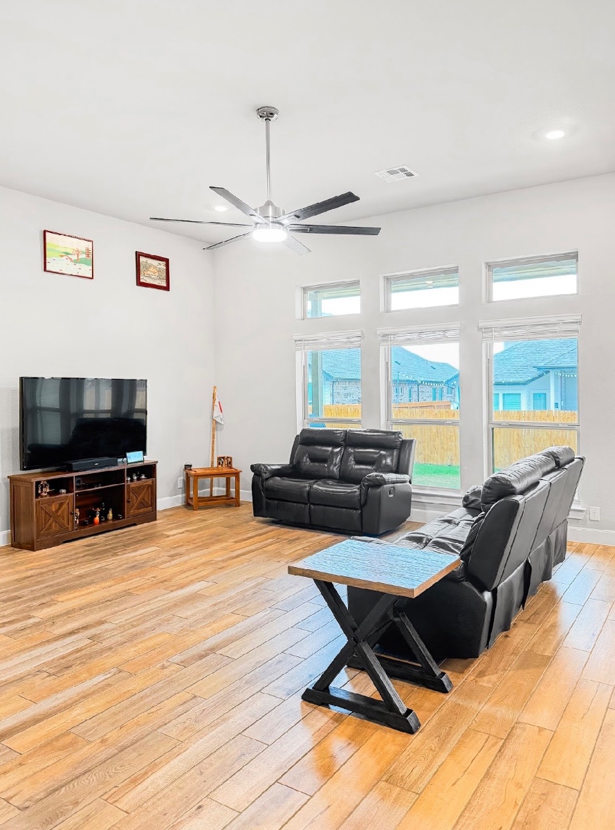4 beds 3 Baths and an office , Paid off solar panels, paid off security system, exterior permanent lights around home. Tile throughout entire home. Covered Patio.