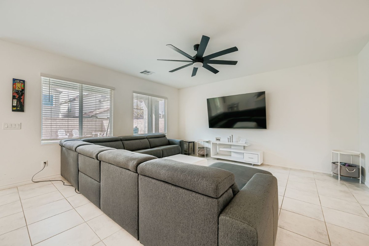 Beautiful newer home in a gated community, tucked in a quiet cul-de-sac with only one neighbor beside and behind. Adjacent to the community park, this family-friendly home is perfect for a growing family. The open floor plan is ideal for entertaining, featuring a kitchen with granite counters, a large island, and stainless steel appliances that flows into the family room. Enjoy the convenience of a downstairs bedroom and full bath, with additional bedrooms upstairs for comfort and space. Step outside to a large pool-sized backyard with stunning mountain views—perfect for gatherings, barbecues, or creating your dream outdoor oasis. 4.25% interest rate 100% financing for qualifiedd buyers.
