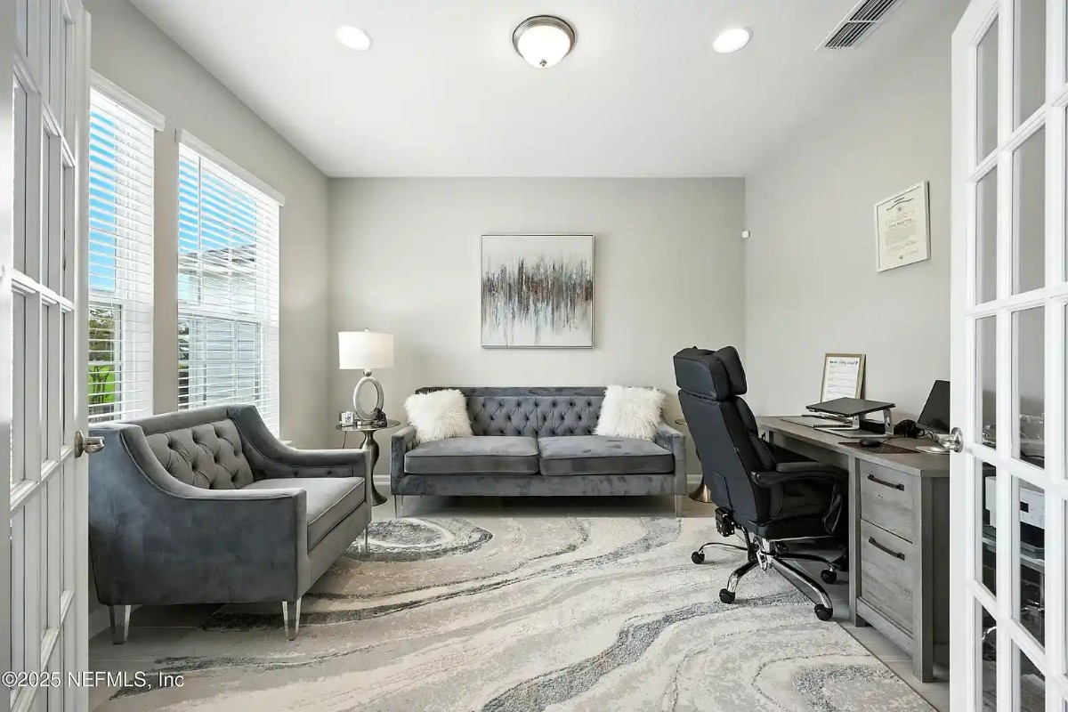 Less than 1 year old lakefront home in Silver Landing (Silverleaf), St. Johns Co — Resort Style amenities, Top-Rated schools, 25 min commute to NAS JAX. 3BR + study downstairs, full bath & huge bonus/4th BR upstairs with full bath. Quartz counters, built-in appliances, tile/LVP (no carpet), screened lanai, large yard, lake views from family & master. Flexible lease/PCS-friendly, early-release for PCS negotiable. Short-term/furnished option available. Contact Adam @ 321-888-5292. Available early November 2025.