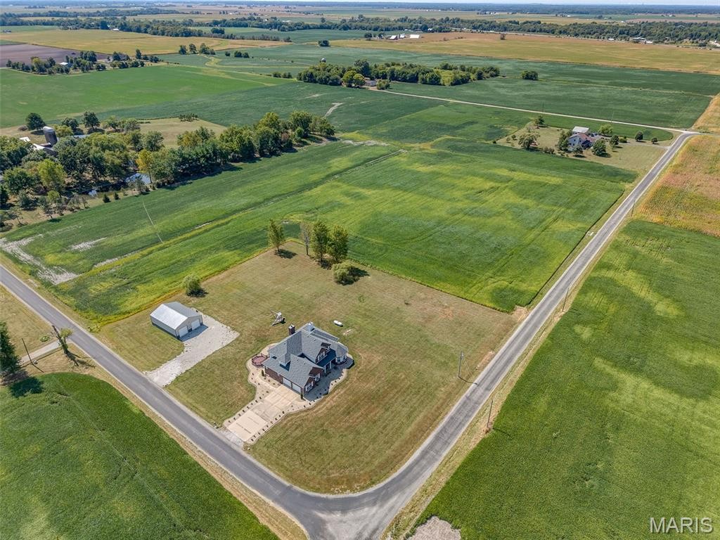 Full-brick EXECUTIVE ESTATE on over 2 acres in Edwardsville School District! This stately 1.5-story home pairs privacy of the country w/sophistication of executive design. Soaring floor-to-ceiling windows flood the interior w/natural light. Custom media built-ins enhance the great room & is it's anchored w/a jaw-dropping brick fireplace as a striking centerpiece. Main-level primary suite is a true retreat, featuring a spa-inspired bath w/soaker tub & see-through fireplace warming both the bath & bedroom for cozy evenings. A supporting bedroom & rare 2nd full bath on the main level add versatility, while laundry area w/mud sink provides convenience. Entertain w/ease in the formal dining room, or gather in the eat-in kitchen w/center island that flows effortlessly to composite decking & serene views. Upstairs, 2 expansive bright & airy bedrooms share a bath overlooking the great room. Full unfinished basement offers endless opportunities to customize to your lifestyle. Peace of mind comes w/new roof, gutters, & siding (2024), newer HVAC & water heater, a whole-house generator, & fiber-optic connectivity. A 30x40 metal outbuilding w/100-amp service adds unmatched flexibility for storage, hobbies, or recreational equipment. Perfectly placed on just over 2 acres of well maintained landscape & grounds. Adjacent 3-acre parcel is available for sale. This property offers the rare blend of luxurious country living, modern convenience, & access to one of the premier school districts.