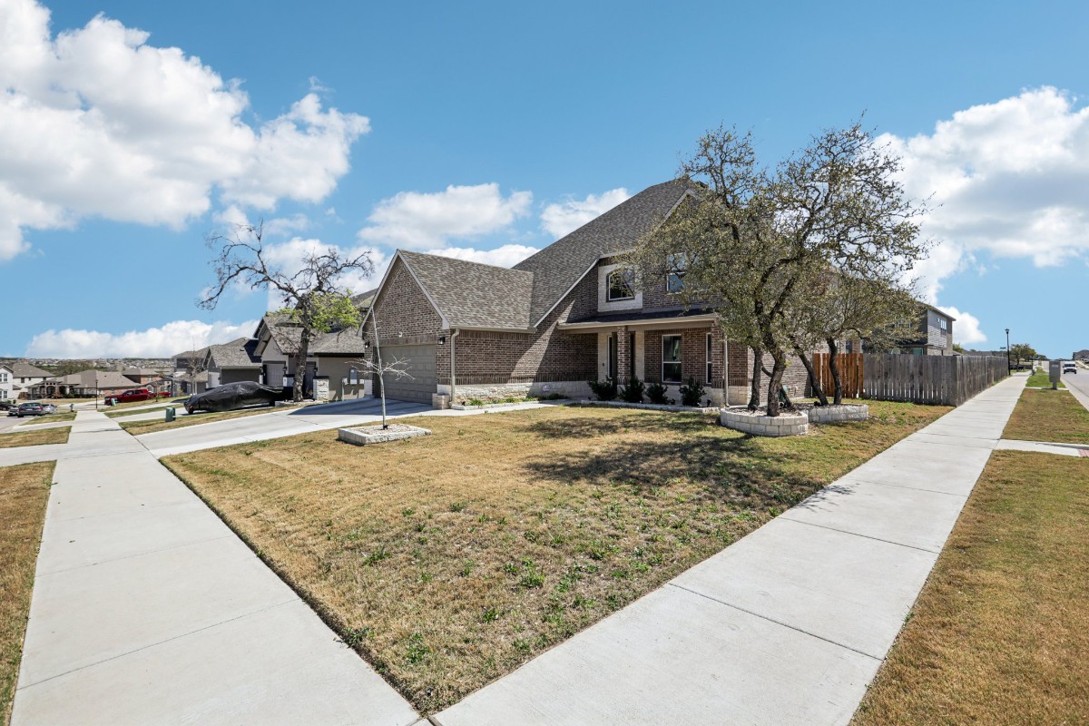Premium corner lot with over 3,100 square feet, this 4-bedroom, 3.5-bath home offers a functional layout perfect for everyday living or hosting. You'll find updated light fixtures throughout, a kitchen with granite countertops and a double oven, and a two-story living room filled with natural light. Upstairs features a versatile loft ideal for a game room, media space, or second living area. The primary suite is conveniently located downstairs and includes dual vanities, a separate tub and shower, and a spacious walk-in closet. Enjoy the extended back patio, perfect for relaxing or entertaining. Recent HVAC upgrades help keep things comfortable year-round, and the full gutter system adds extra peace of mind. Conveniently located near Fort Hood, the YMCA, parks, schools, and shopping