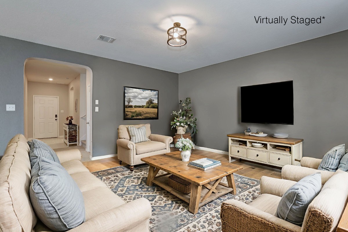 FOR SALE! One of the BEST prices per square foot 4 bedroom/3 bath in a two-mile radius, PLUS, don't worry about a thing, because this home is MOVE IN READY and has a NEW ROOF and the seller will give a REFRIGERATOR allowance! Homeowner took great care of this home, down to the grout lines, this is one of the cleanest pre-owned homes! PLUS, it has a functional floor plan with a full bedroom and bathroom downstairs. You will also find a large kitchen, open to the dining and family room. Head upstairs for a loft, workout room, game room or second living, whatever serves you best, with a large primary upstairs, along with two bedrooms and full bath. No going through the laundry to get to the garage. The laundry is conveniently upstairs near bedrooms in it's own space. INCLUDED is a newer SMART electric stove/range that was seldom used, AND a WASHER & DRYER. Finally, the backyard is ready for you to make it an oasis. Oak trees are on the way to give more shade and privacy and with the large usable space, possibilities are endless.