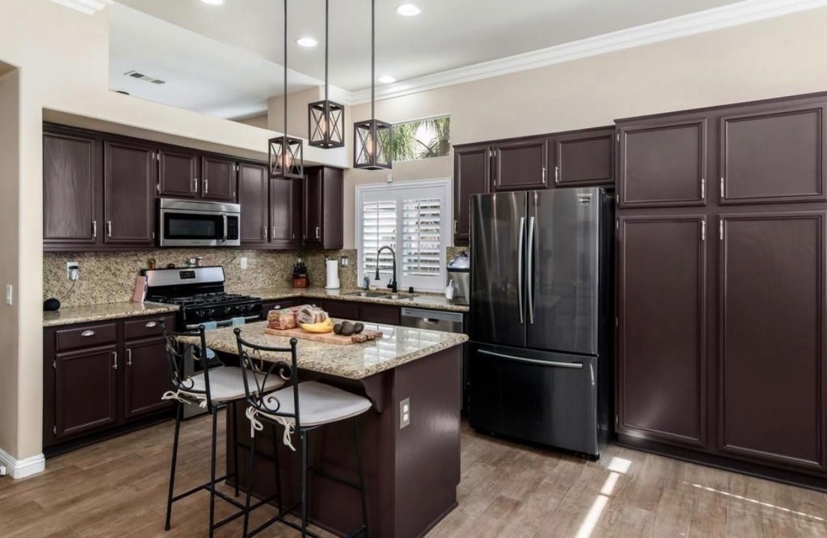 VA Assumable !! Your very own tropical oasis awaits in the gated Arbordale community of Murrieta. This spacious single-story 5-bedroom, 2-bath pool home sits on an expansive .25-acre lot and offers the perfect blend of comfort, style and outdoor living. Inside, a bright open floor plan features a welcoming living and dining room combination, while the kitchen opens seamlessly to the family room with a cozy fireplace and direct access to the backyard—ideal for everyday living and entertaining. Granite countertops in the kitchen and bathrooms add a polished touch throughout the home. Step outside to a true backyard retreat complete with a sparkling freshwater pool and waterfall, plus an incredible palapa-covered outdoor kitchen featuring a BBQ, sink, TV, bar seating and a fire pit—creating the ultimate space for relaxing or hosting friends and family. 22 Solar panels that can be paid off at closing or assumed by the buyer. Ideally located within the community, this home is within walking distance to parks, shopping, fitness center, dining and award-winning schools, and just minutes from the renowned Temecula Wine Country—offering the perfect balance of everyday convenience and weekend escapes.