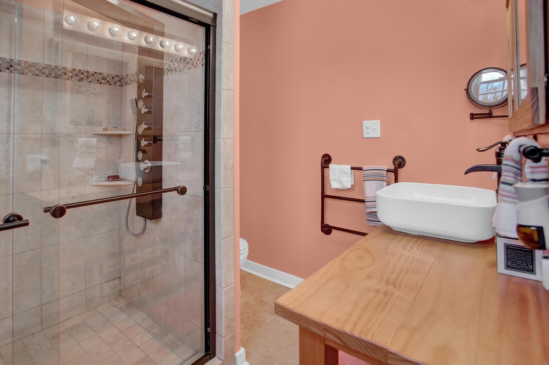 Step outside to a true retreat. A spacious patio overlooks open hills and protected views, while a seven-seat hot tub offers a quiet place to unwind under the stars. Wildlife is part of the landscape here. Deer, fox, hawks, bald eagles, and wild turkeys are frequent visitors.