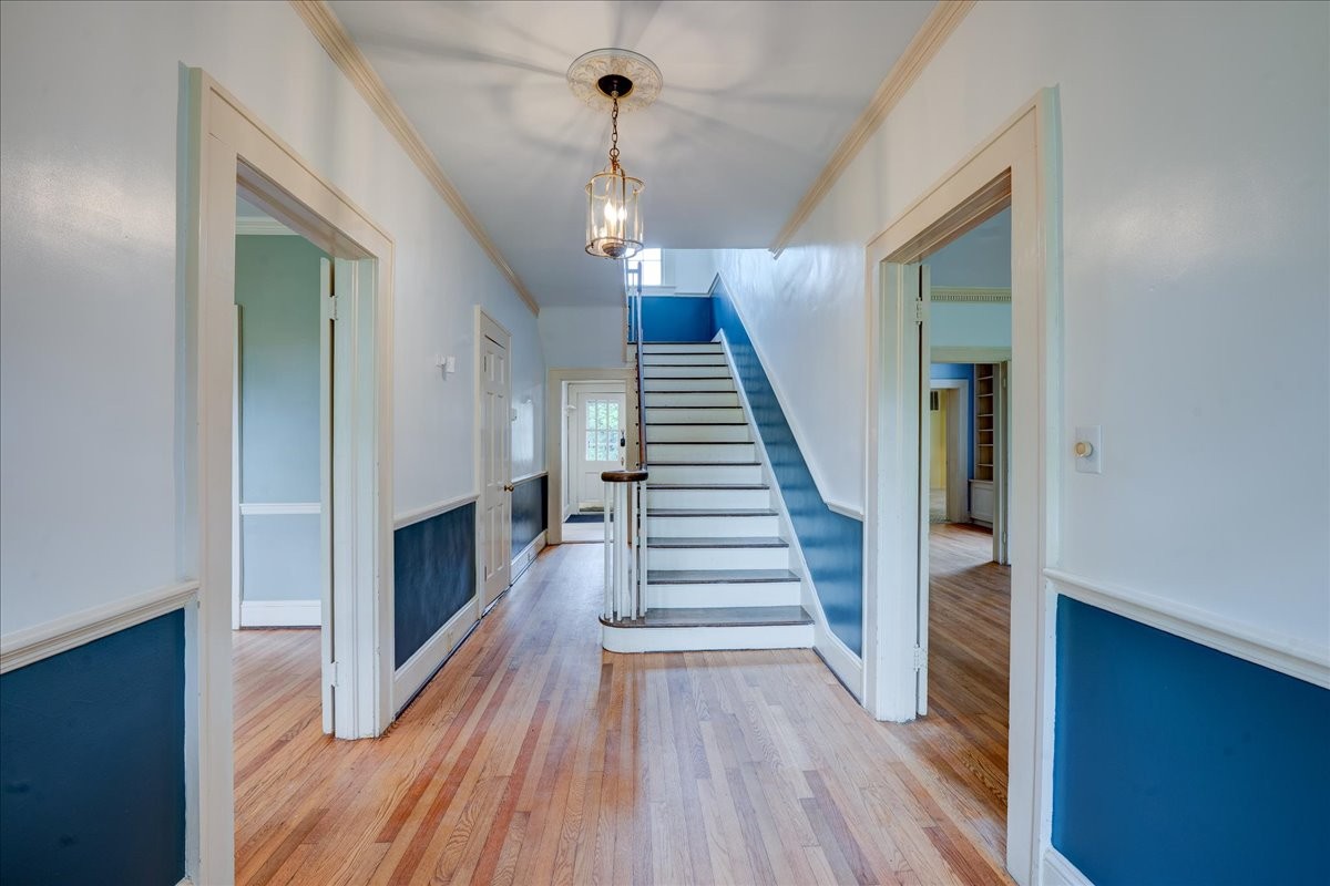 Upon entry, you're welcomed by a stunning grand staircase and gleaming hardwood floors that extend throughout the home, setting a tone of classic elegance. The updated, main kitchen is a chef's dream, featuring ample cabinetry, a butler's pantry, and modern conveniences designed for entertaining and everyday living.