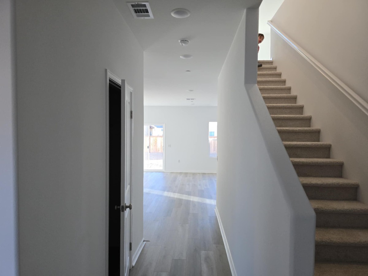 Located in west Rosamond, this new construction home is available for rent on 9/1/2025. It features a fully landscaped back yard complete with a shed, paid solar panels that keep the power bill low, ceiling fans in every room, blinds on every window and shutters leading to the back yard. There are four bedrooms upstairs, including the primary bedroom, which boasts one large walk-in closet and an additional walk-in closet, and the laundry room is also upstairs for convenience. The guest suite is located downstairs for privacy of any guest, and a room at the front of the house can be used as a play room or office. Refrigerator, washer, and dryer included. Pets subject to approval. Rent includes trash, bi-monthly pest control, and lawn service. Tenant pays water, gas, and electric.