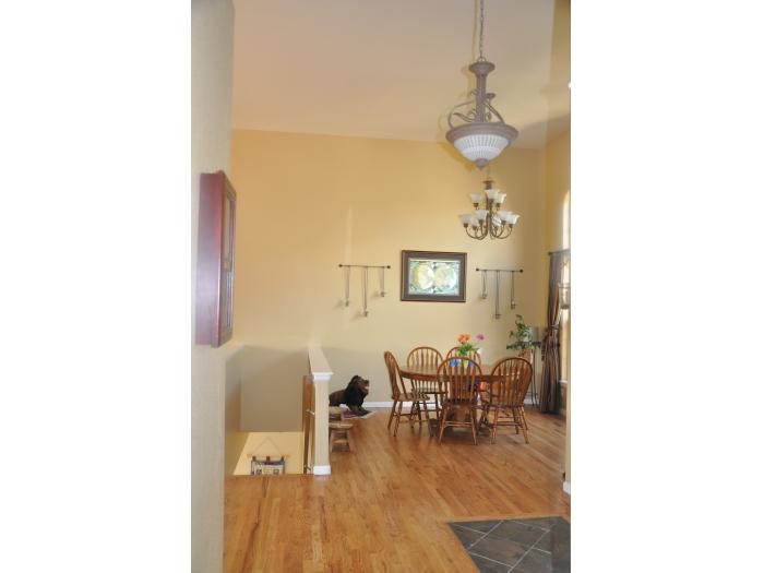 Main level living at it's finest! Tall windows drench the main living areas of this open floorplan with sunlight. New hardwood floors throughout main level which include living room, dining room, kitchen, eat in kitchen area, hallways, owners retreat, and 2 more bedrooms. Master spa bath with jacuzzi tub, extra large shower, walk in closet. Living room boasts tall windows, gas fireplace, 16 ft ceilings, & is prewired for that flat screen TV. All main level bedrooms include ceiling fans.