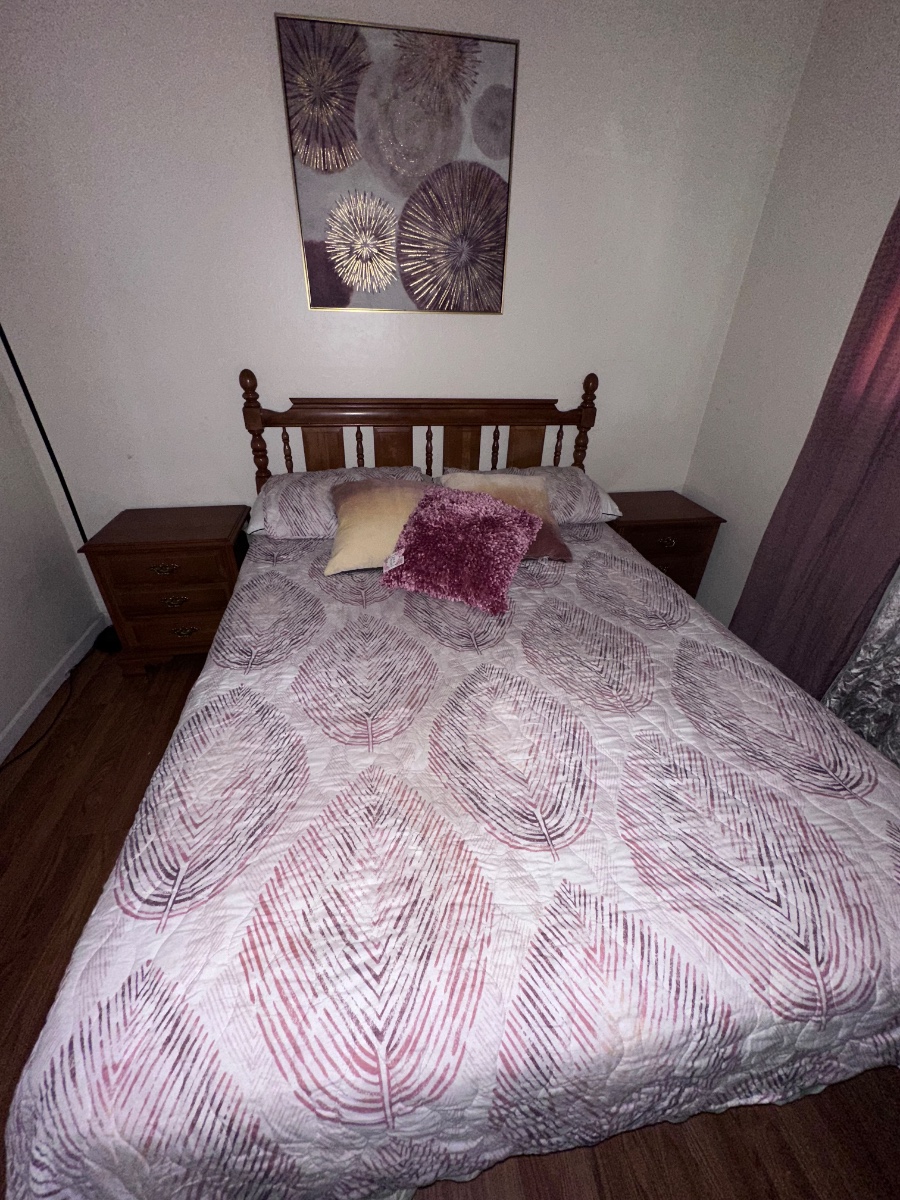 QuaintnComfy Quarters has 2 private bedrooms, 1 with cleaned shared bathroom and the other a private bathroom, both fully furnished with plush queen beds, 50 inch color tv, utilities included, washer/dryer, hardwood floors, recently painted, centrally located 7 minutes from Travis Airforce Base