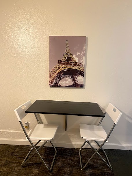 Private and cozy small studio with its own entrance, bathroom and kitchenette which includes a small refrigerator, microwave, portable stove and a small kitchen cabinet sink/combo. The studio rents furnished with a queen bed.
